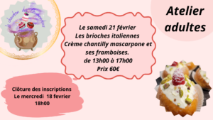 Atelier adultes « Les brioches italiennes crème chantilly mascarpone et ses framboises »